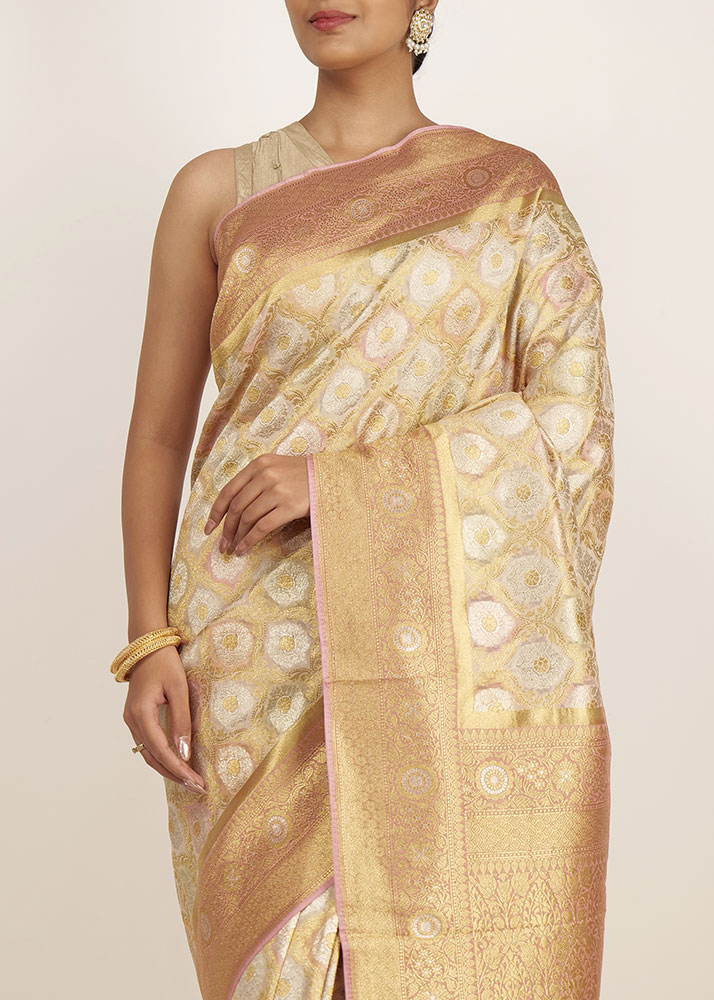 - Don’t store the saree in a plastic cover as this will cause the gold embroidery to turn black.