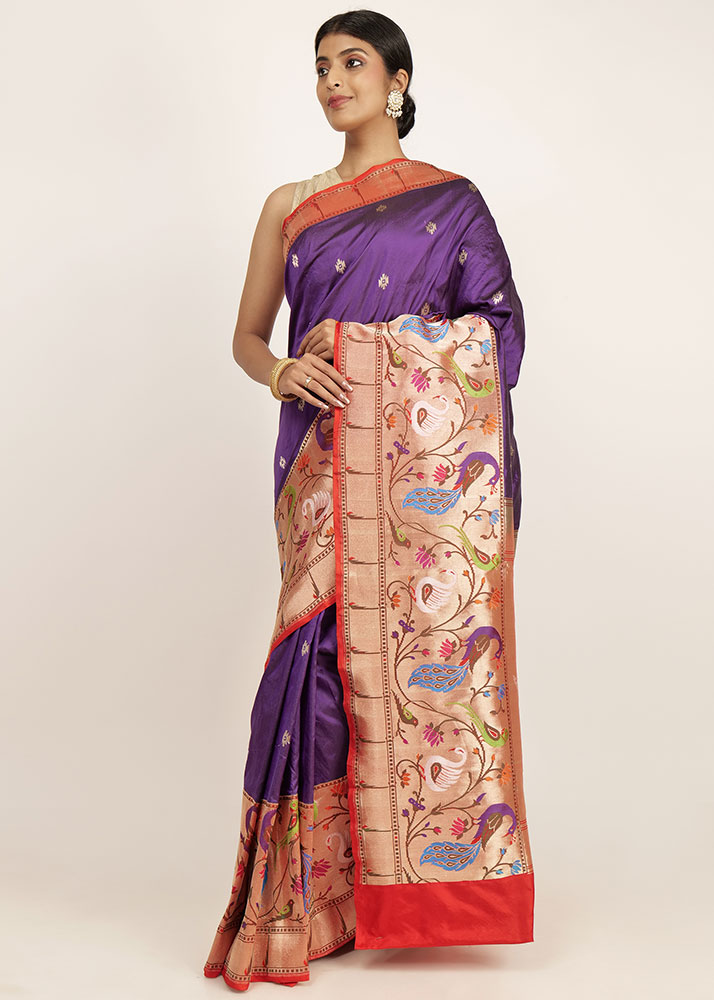 Katan Paithani Mor Purple