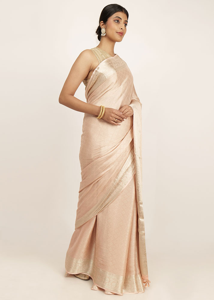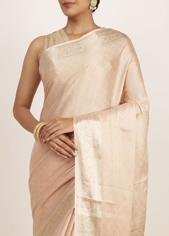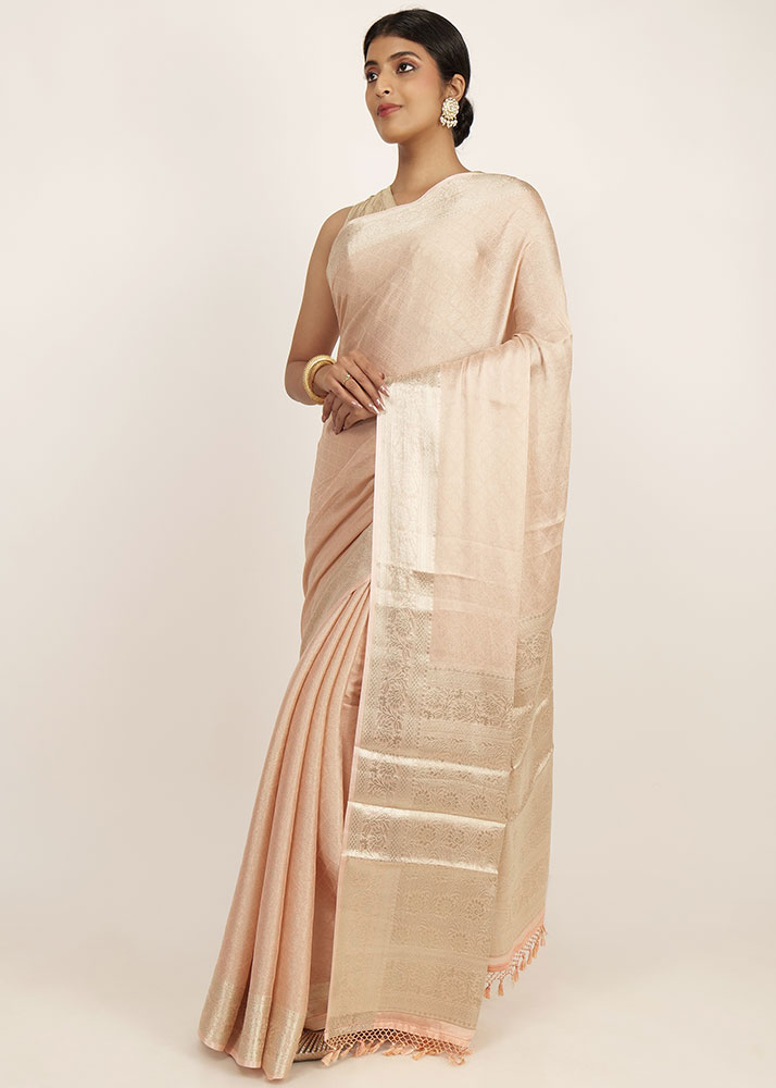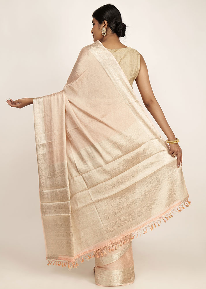 Zari all over the saree and zari border in gorgeous peach colour saree crafted in silk.