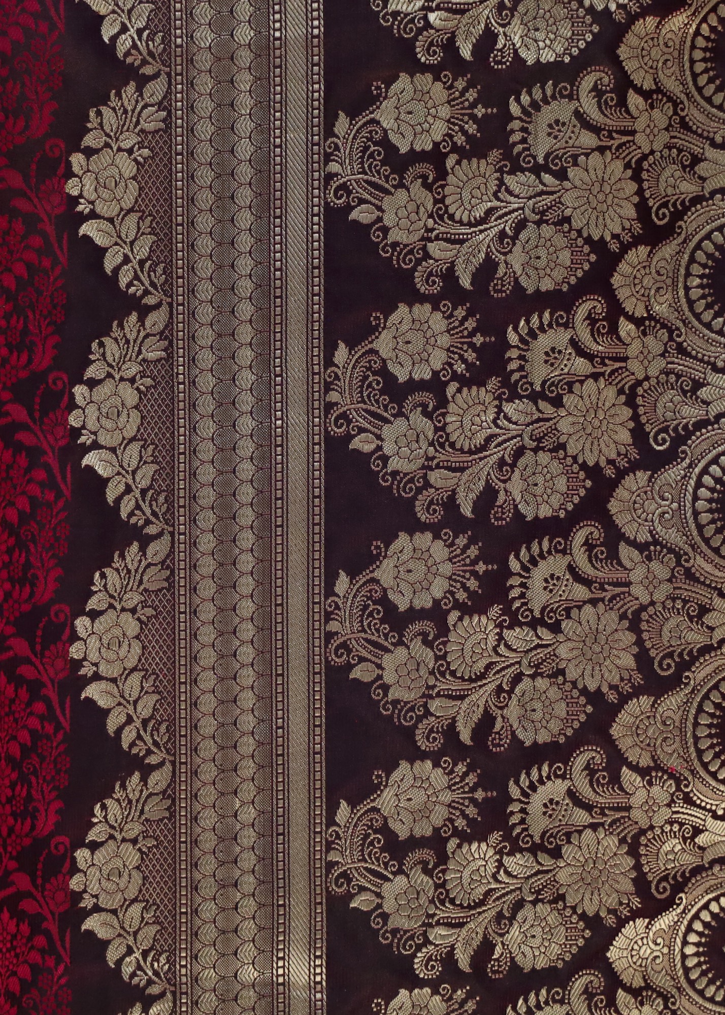 - Don’t store the saree in a plastic cover as this will cause the gold embroidery to turn black.
