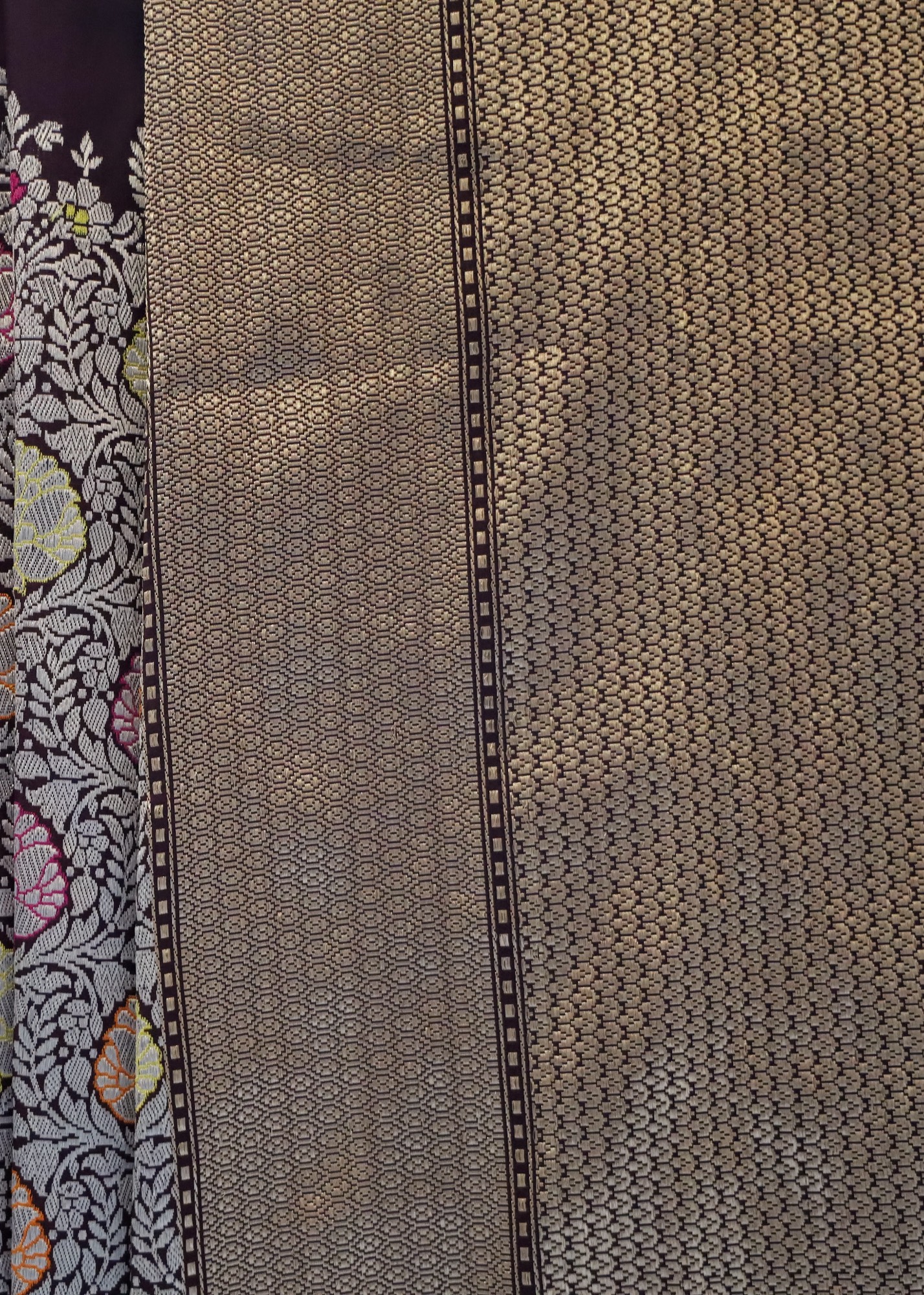 - Don’t store the saree in a plastic cover as this will cause the gold embroidery to turn black.