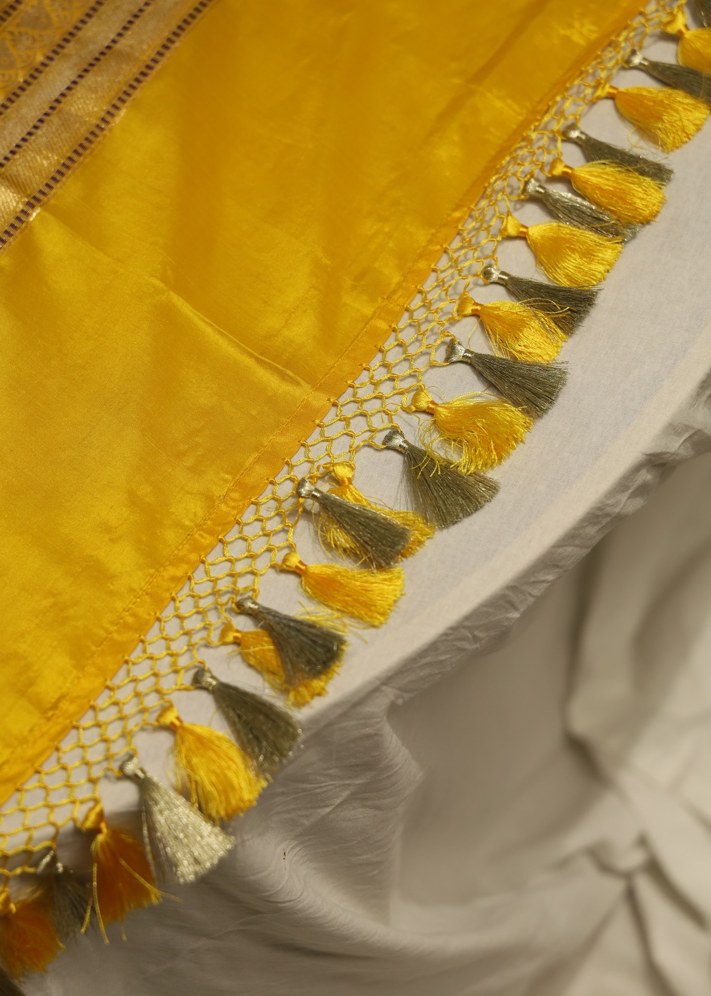Yellow Katan Brocade Jaal with Blue Mina Buti